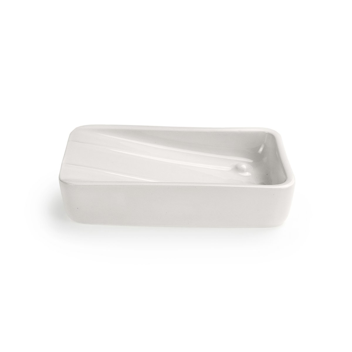 KOMFORTABEL ZU VERWENDEN. Der Neigungswinkel der Töpfer-Seifenschale lässt Wasser am nassen Seifenstück heruntertropfen, während zwei vorstehende Punkte verhindern, dass die Seife nach unten rutscht und in Wasser eindringt.
