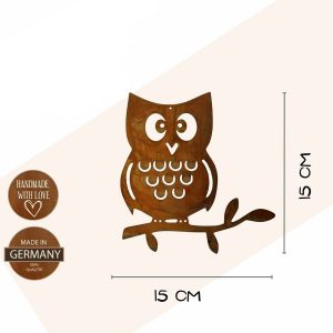 Eigenschaften: Kreative Mitarbeiter fertigen die filigrane Metall Deko Eule von Hand aus Metall. Durch die Rostpatina, die niemals gleich ist, wird jedes Dekotier zum Unikat. Am Kopf der Deko Figur befindet sich eine kleine Lochbohrung zum Aufhängen.