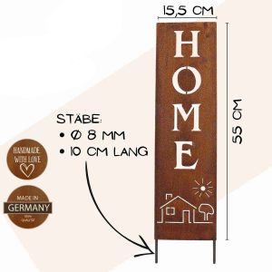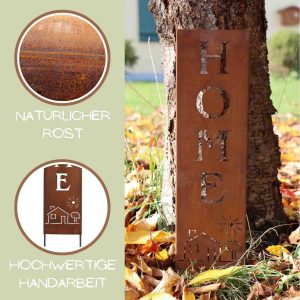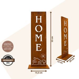 Passend für Ihr Wohnzimmer und Garten: Das Rost Home Schild ist eine charmante Dekoration für drinnen und draußen. Ganz gleich, ob im Wohnzimmer oder auf der Terrasse – dieser edle Rost Ständer setzt stilvolle Akzente.