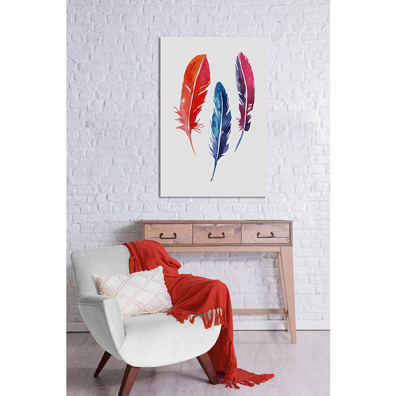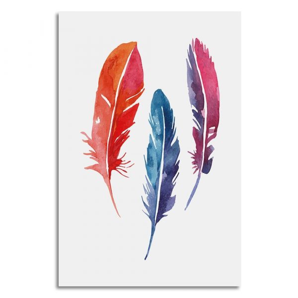 Leichtigkeit, Farbe und ein Hauch von Boho-Chic – unser Leinwandbild mit drei bunten Federn bringt Frische und Lebendigkeit in jeden Raum.