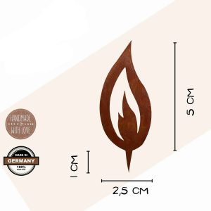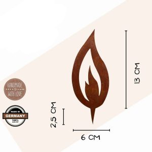 Eigenschaften: Die Flammen im Landhaus-Style werden aus Metall hergestellt. Von Hand verarbeitet, erhalten sie ein spezielles Finish, wodurch die einzigartige Rost-Patina entsteht. Erweitern Sie Ihre Gartendeko mit diesen rostigen Metallflammen und schaffen Sie eine rustikale Atmosphäre.