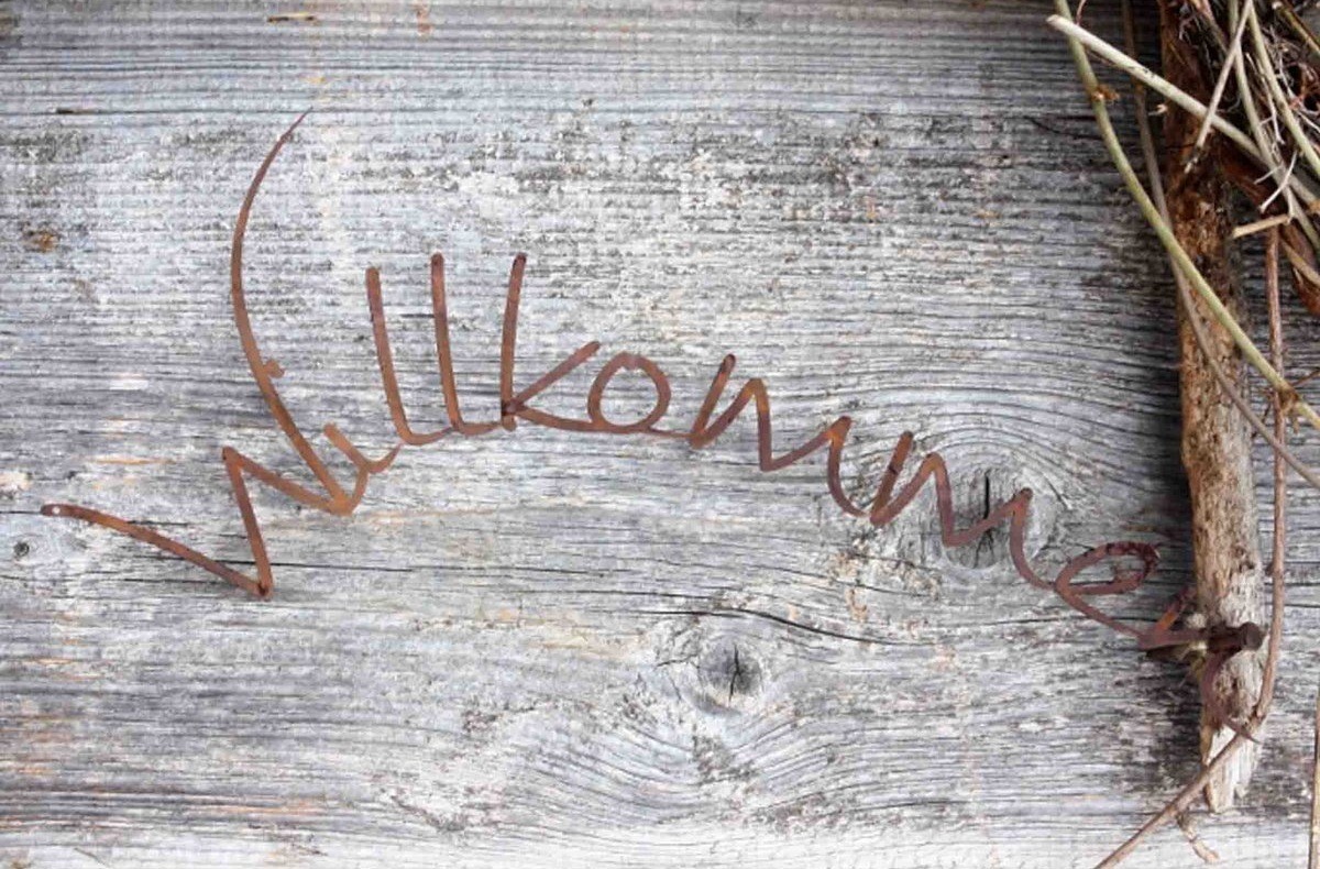 Biegsamer Willkommen Schriftzug aus Metall für den Türkranz oder als Wanddeko