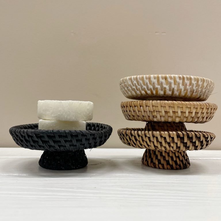 Handgefertigte Schalen auf Rattansockeln aus Bali. In verschiedenen Farben erhältlich. Ideal zum Aufsetzen eines Duftblocks, kann aber natürlich auch anderweitig verwendet werden.